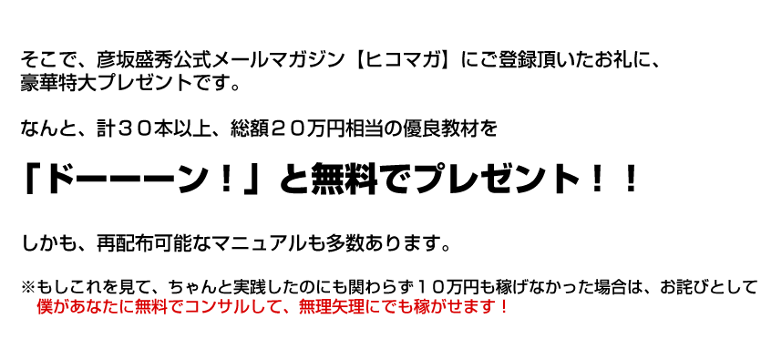 それでは、超豪華総額20万円分のプレゼントの中でお会いしましょう。
